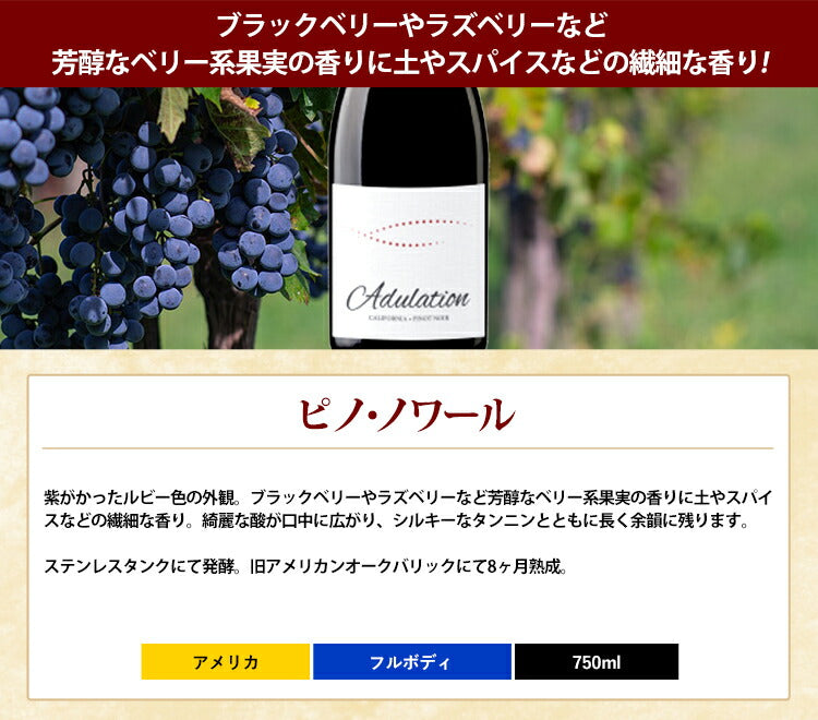 アデュレーション[2017]ピノ・ノワール 赤 750ml ADULATION PINOT NOIR アメリカ カリフォルニア ナパ・ヴァレー 赤ワイン