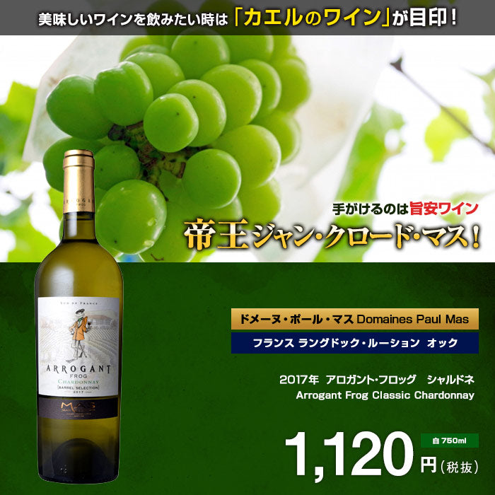 ![アロガント・フロッグシャルドネ[2018]ドメーヌ・ポール・マス白750mlDomainesPaulMas[ArrogantFrogClassicChardonnay]フランス白ワインラングドックルーションラングドック・ルーション](http://www.unibis.co.jp/cdn/shop/products/wfrlr004003_03_{width}x.jpg?v=1618279955)