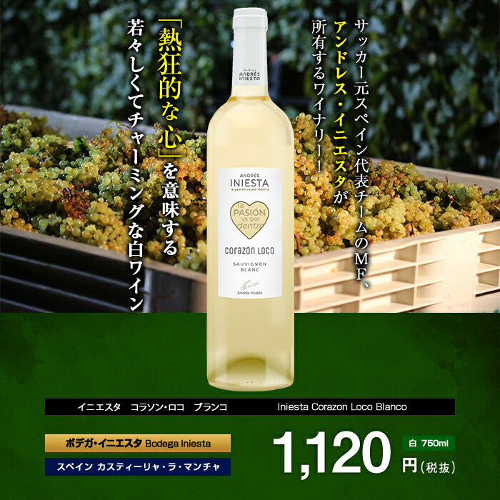 ボデガ・イニエスタは、サッカースペイン代表チームのメンバーである、アンドレス・イニエスタがラ・マンチャに所有するワイナリー。2010年に誕生した、「ボデガ・イニエスタ コラソン・ロコ」。コラソン・ロコとは「熱狂的な思い」。イニエスタ本人のサインとともに、「La pasion va por dentro(情熱を内に秘めて)」のキーワードもラベルにプリントされています。